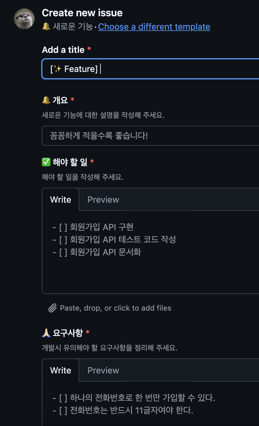 이번 협업에서는 기존에 배운 컨벤션과 브랜치 전략 대비 훨씬 효율적인 전략을 채택할 수 있었다. 소마고 출신인 우리 08년생 BE 팀장님께서 평소에 사용하는 컨벤션을 가져다 썼는데, 특히 브랜치 전략과 이슈 템플릿 부분에서 많이 배웠던 것 같다. 일단 이슈 오픈 -> 브랜치 생성 -> PR로 이어지는 기능 추가 플로우가 국룰이라는 것도 이번에 배우게 되었고, 첨부한 이미지대로 브랜치 이름에 [옵션#이슈번호] 식으로 넣으면 해당 이슈와 링크로 연동되는 것도 알게 되어 유용하게 사용했었다. 이슈 템플릿을 지정해서 규격화된 기능 명세서를 작성하는 것도 현재 내가 추가하려는 기능이 무엇이고 또 어떤 목적이며, 어떠한 방식을 사용할 것인지 모두에게 알릴 수 있어서 좋았고, 나 스스로도 명확히 하고 나아갈 수 있어서 좋았다. 올해 상반기에 진행될 내 졸업 프로젝트 협업 시에도 이 컨벤션을 쓰자고 강력 추천할 것이다! ㅎㅎ